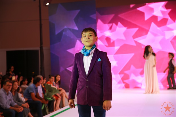 Дизайнер Эъзоза Орипова эса ўғил болалар учун, бахмал, велюр ва велвет матоларидан тикилган костюмларда зумрад ва бинафша ранглардан фойдаланган. Бу кўринишни котелок-шляпалар, катакли шим ва камзулчалар тўлдириб турди.