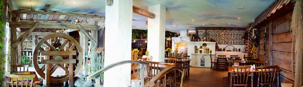Рестораннинг дизайни ва ошхонаси орқали руслар ҳаётининг бор рангбаранглигини акс эттиришга эришилган. Бу ерга кириб сиз ҳақиқий рус қишлоғига тушиб қолгандай бўласиз. Тўсиқлардаги хўрозлар, қудуқ, ёғоч тегирмон каби деталлар нафақат катталарни, балки болаларни ҳам бефарқ қолдирмайди. Дарвоқе болалар учун бу ерда махсус таомнома ҳам мавжуд. "Ёлки-Палки" ресторанининг ажойиб фишкаси арава кўринишидаги швед столидир. Ресторан ўзининг ажойиб таомлари билан машҳурлик қозонган. Сиз бу ерда қадимий рецептлар бўйича тайёрланган рус ошхонаси таомларидан баҳраманд бўлишингиз мумкин.